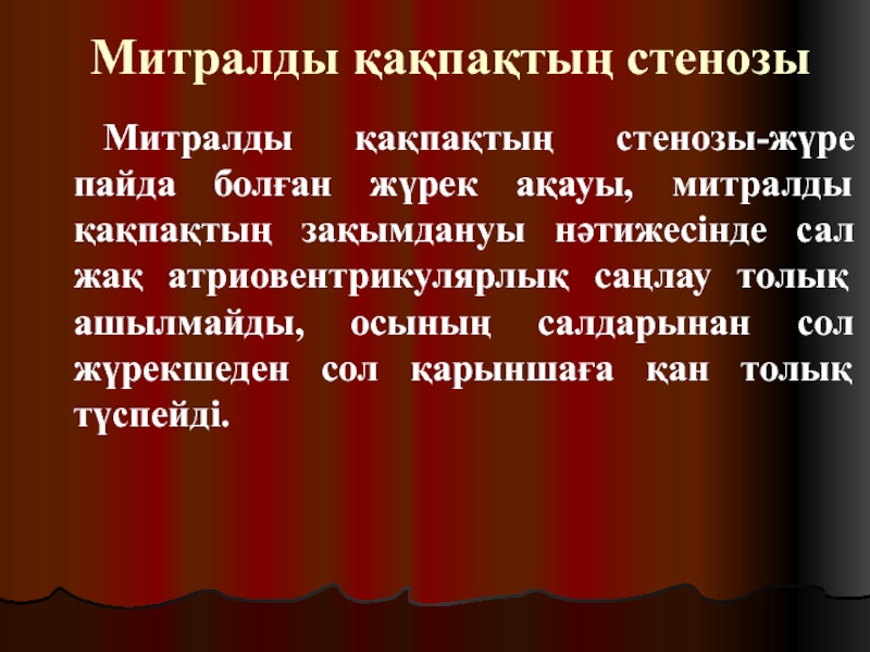 Митралды қақпақтың стенозы-жүре пайда болған жүрек ақауы,