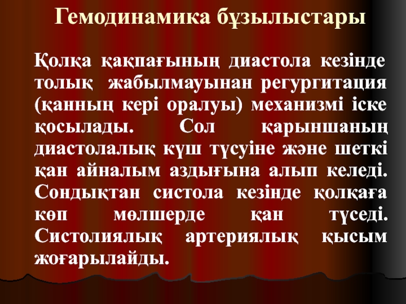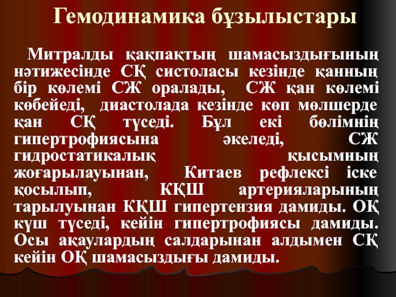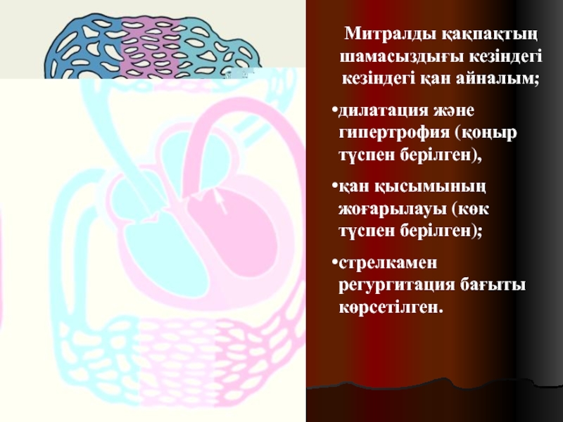 Слайд 8Митралды қақпақтың шамасыздығы кезіндегі кезіндегі қан айналым;