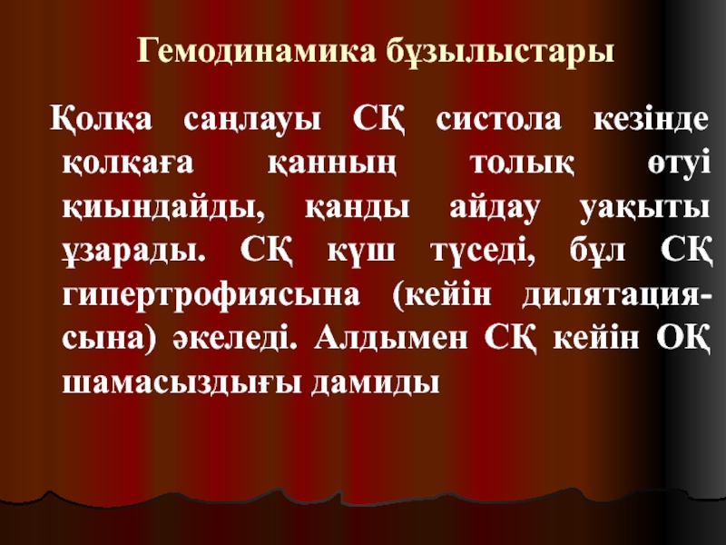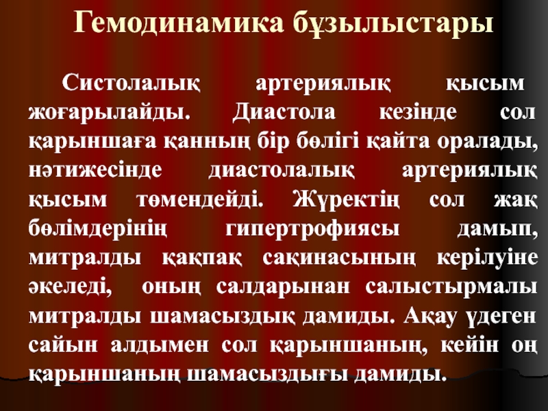 СҚ гипертрофиясына (кейін дилятация-сына) әкеледі. Алдымен СҚ кейін ОҚ шамасыздығы дамиды