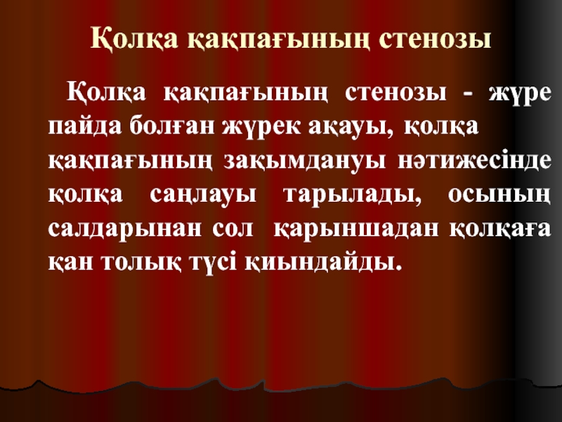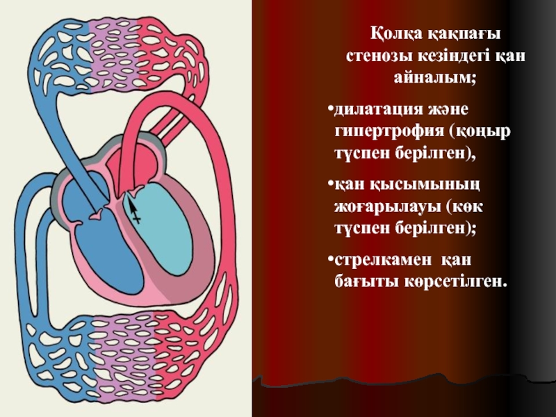 Слайд 50Қолқа қақпағы стенозы кезіндегі қан айналым;