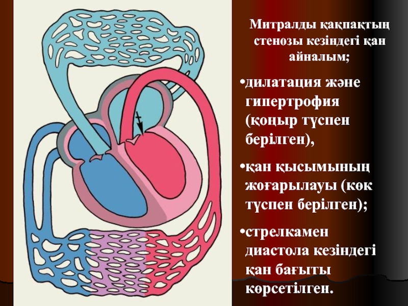 Слайд 21Митралды қақпақтың стенозы кезіндегі қан айналым;