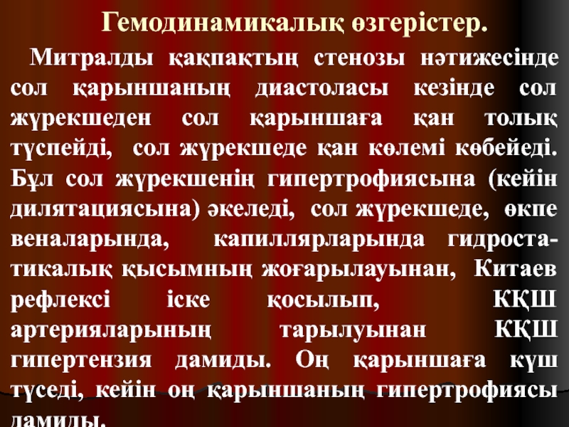 Митралды қақпақтың стенозы кезіндегі патологиялық өзгерістер.