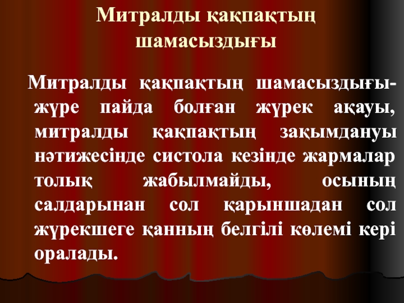 Митралды қақпақтың шамасыздығы- жүре пайда болған жүрек