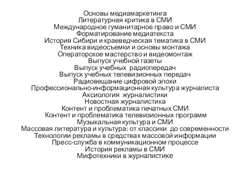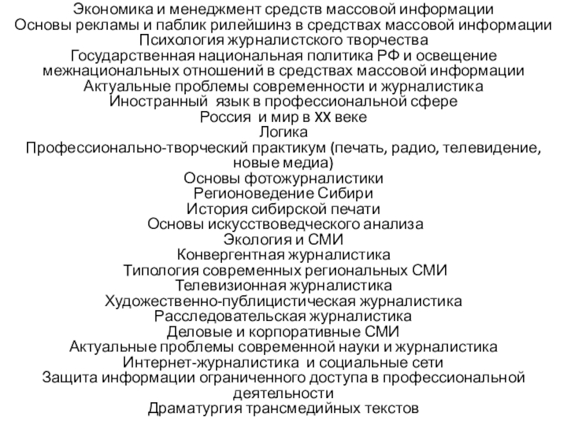 Профессионально-творческий практикум (печать, радио, телевидение, новые медиа)