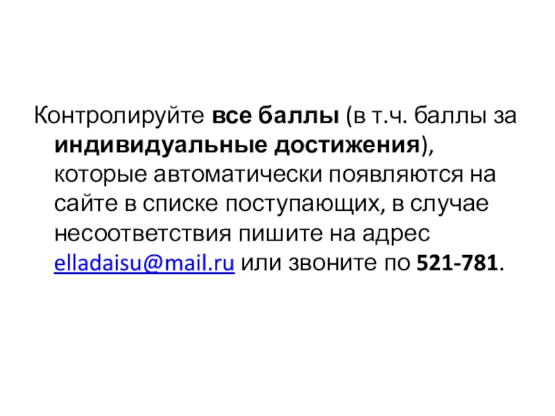Слайд 15Контролируйте все баллы (в т.ч. баллы за индивидуальные достижения), которые