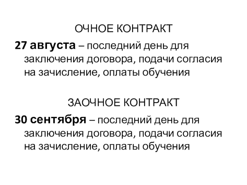 Слайд 7ОЧНОЕ КОНТРАКТ