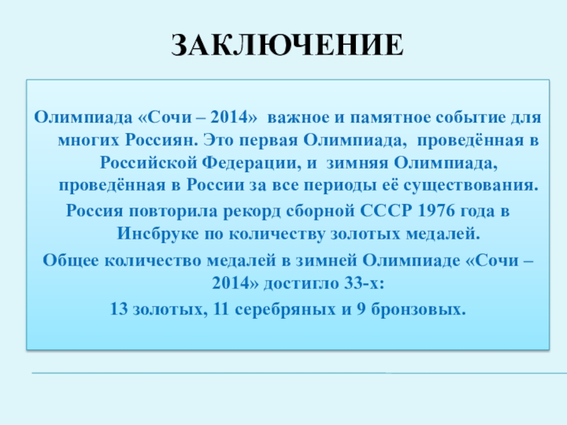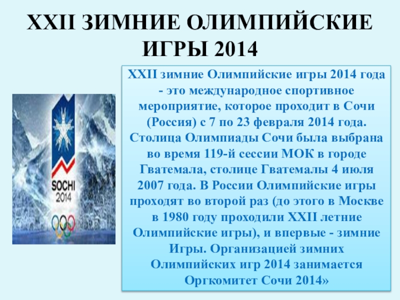 XXII ЗИМНИЕ ОЛИМПИЙСКИЕ ИГРЫ 2014