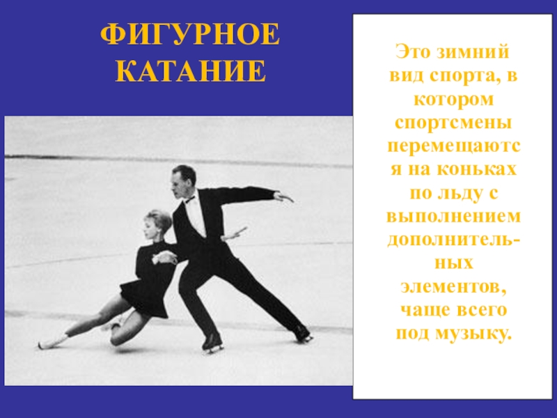 ФИГУРНОЕ КАТАНИЕ  Это зимний вид спорта, в котором спортсмены перемещаются на коньках по льду с выполнением