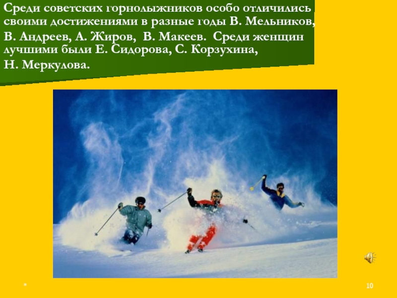 Среди советских горнолыжников особо отличились своими достижениями в разные годы