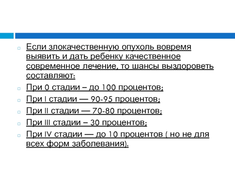 Слайд 27Если злокачественную опухоль вовремя выявить и дать ребенку качественное современное