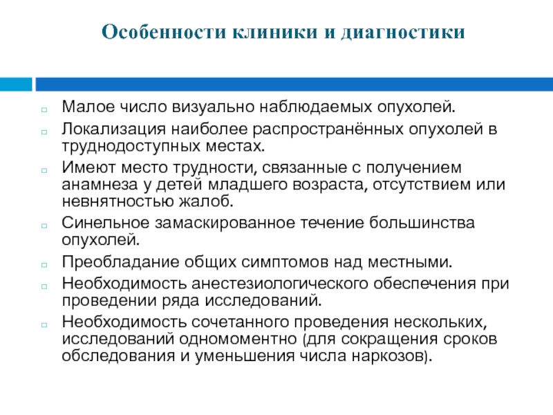 Высокая чувствительность злокачественных опухолей у детей к ионизирующему излучению.