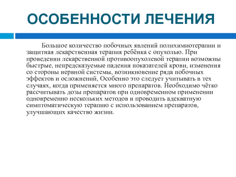 Слайд 29ОСОБЕННОСТИ ЛЕЧЕНИЯ