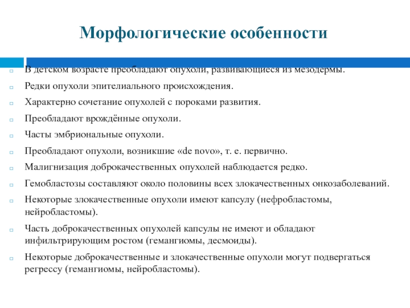 В детском возрасте преобладают опухоли, развивающиеся из мезодермы.