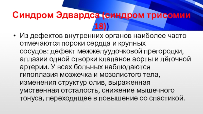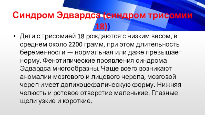 Слайд 18Синдром Эдвардса (синдром трисомии 18))