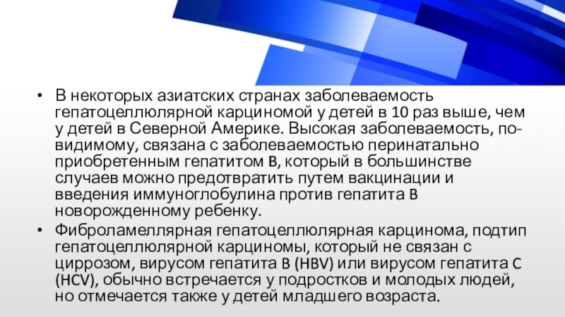 Слайд 24В некоторых азиатских странах заболеваемость гепатоцеллюлярной карциномой у детей в