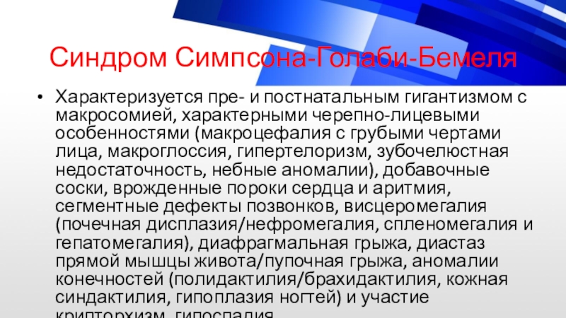 Слайд 16Синдром Симпсона-Голаби-Бемеля