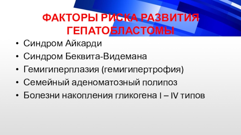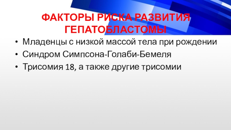 Слайд 11ФАКТОРЫ РИСКА РАЗВИТИЯ ГЕПАТОБЛАСТОМЫ