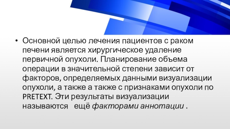 Слайд 4Основной целью лечения пациентов с раком печени является хирургическое удаление