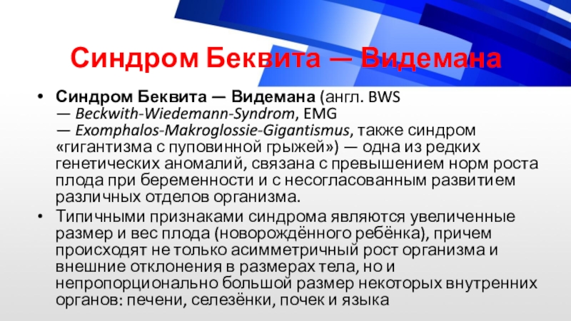Слайд 13Синдром Беквита — Видемана
