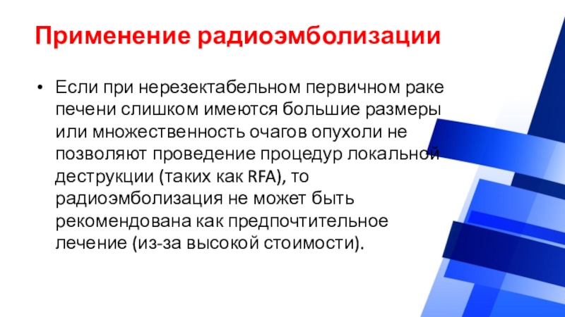 деструкции (таких как RFA), то радиоэмболизация не может быть рекомендована как предпочтительное лечение (из-за высокой стоимости).