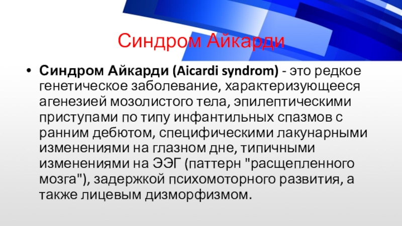 Слайд 14Синдром Айкарди