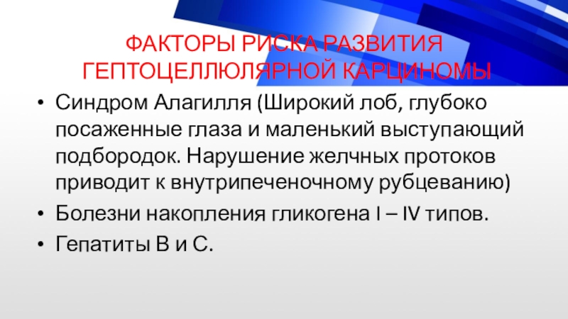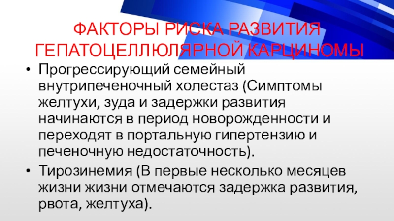 Слайд 12ФАКТОРЫ РИСКА РАЗВИТИЯ ГЕПАТОБЛАСТОМЫ