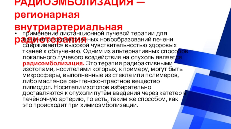 Слайд 62РАДИОЭМБОЛИЗАЦИЯ — регионарная внутриартериальная радиотерапия
