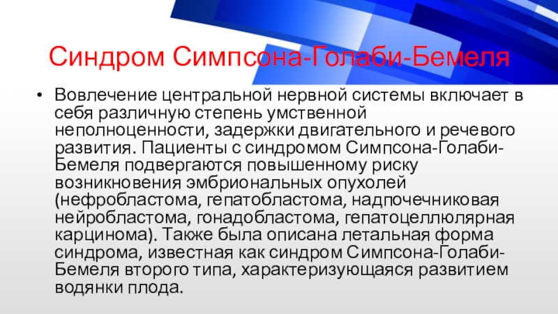 Слайд 15Синдром Симпсона-Голаби-Бемеля