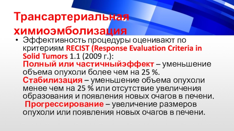 Эффективность процедуры оценивают по критериям RECIST (Response Evaluation Criteria