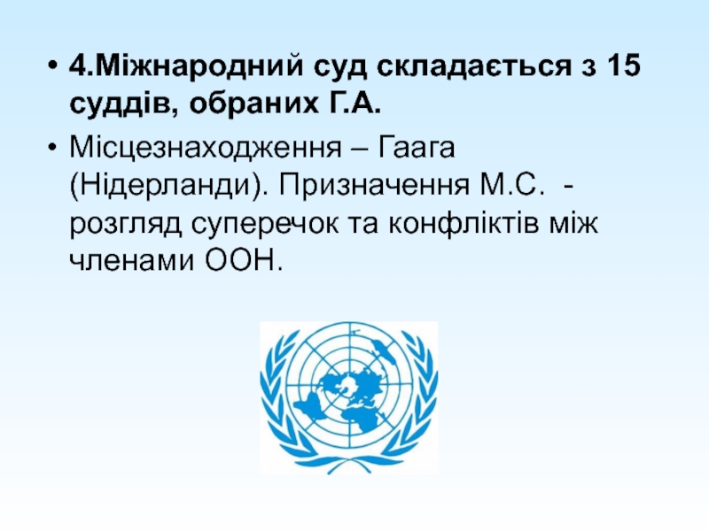 Слайд 134.Міжнародний суд складається з 15 суддів, обраних Г.А.