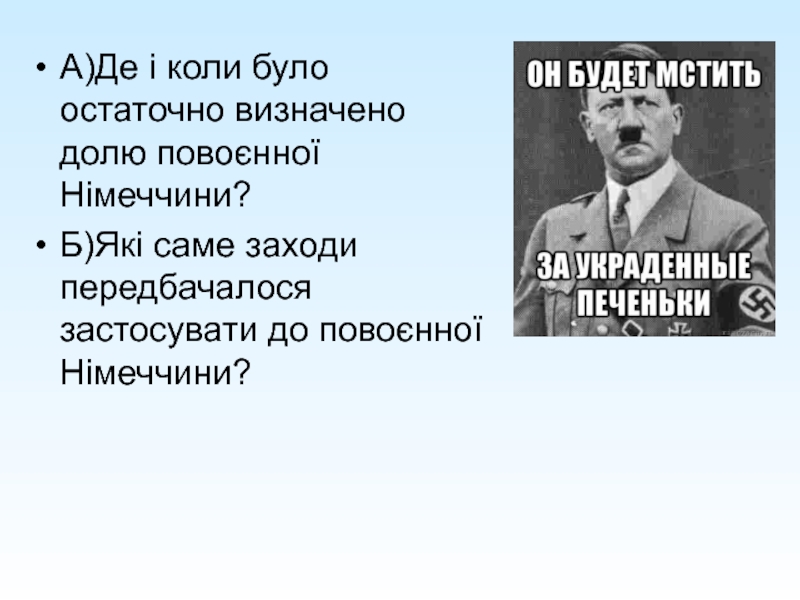 Слайд 29А)Де і коли було остаточно визначено долю повоєнної Німеччини?
