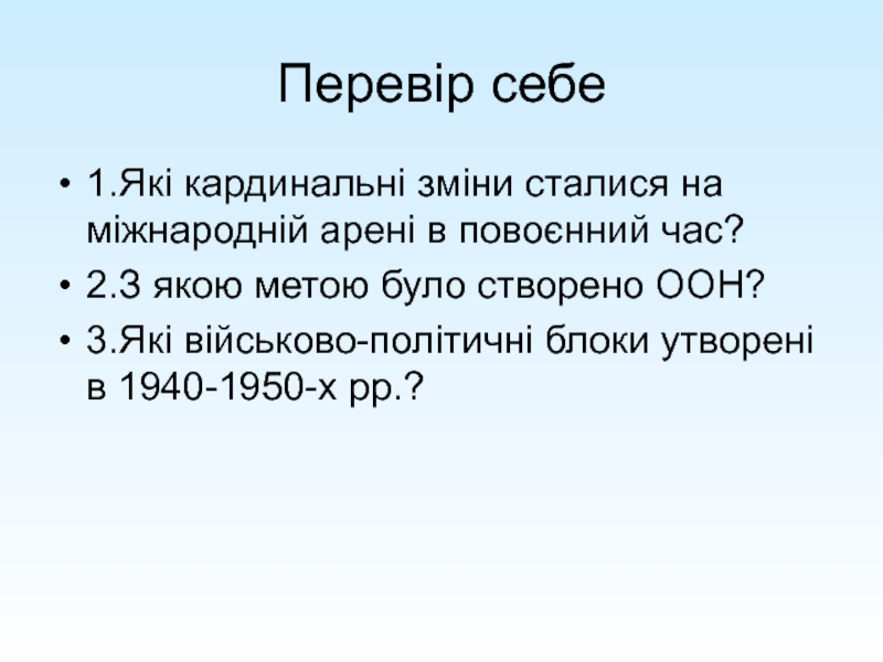 1.Які кардинальні зміни сталися на міжнародній арені в повоєнний