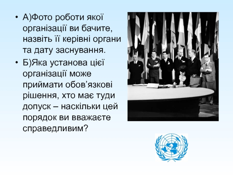 Слайд 25А)Фото роботи якої організації ви бачите, назвіть її керівні органи