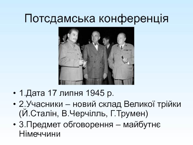трійки (Й.Сталін, В.Черчілль, Г.Трумен)