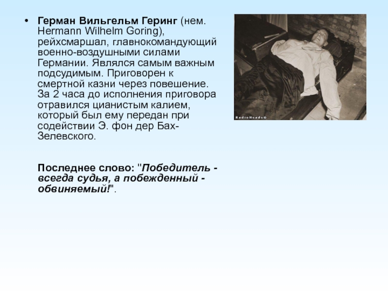 силами Германии. Являлся самым важным подсудимым. Приговорен к смертной казни