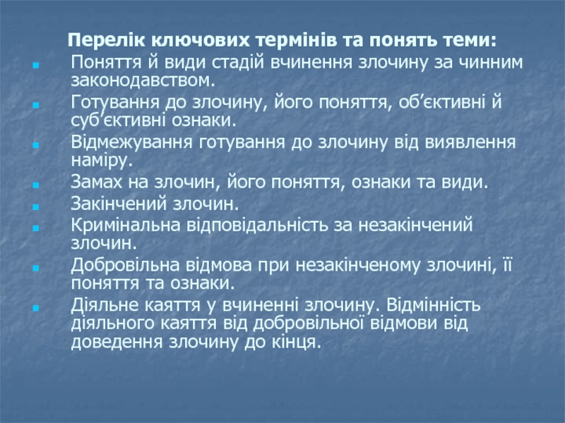 Види стадій вчинення умисного злочину