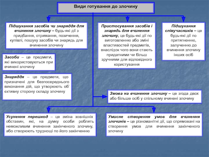 Підшукування або пристосування засобів, знарядь, підшукання співучасників або змова на вчинення злочину, усунення перешкод, а також інших умов для вчинення злочину (ч. 1 ст. 14 КК)