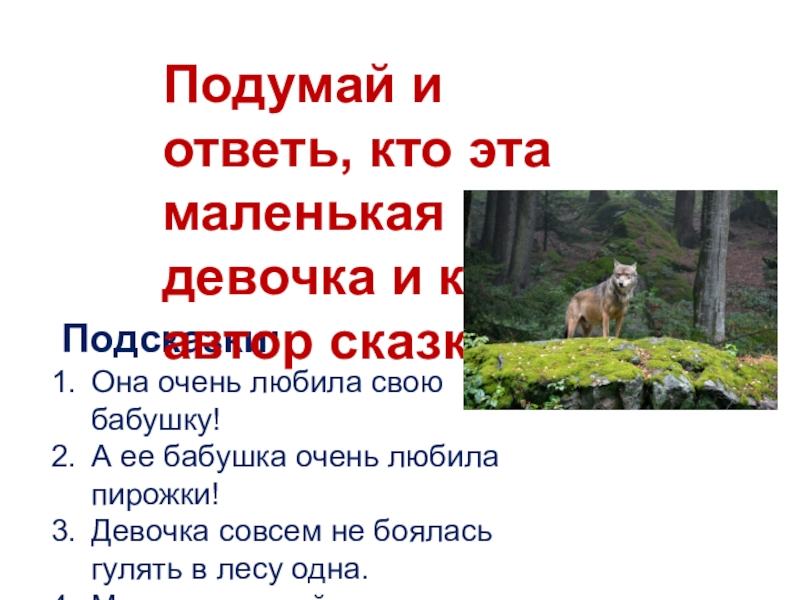 носить головной убор!Подумай и ответь, кто эта маленькая девочка и кто автор сказки?
