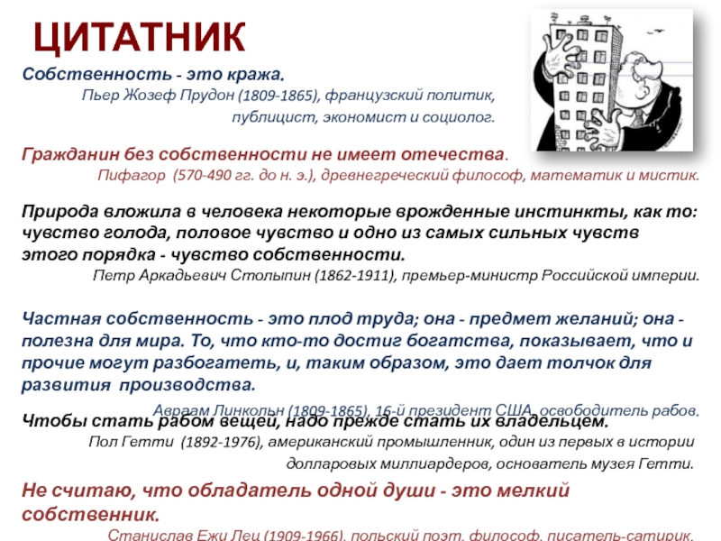Гражданин без собственности не имеет отечества.