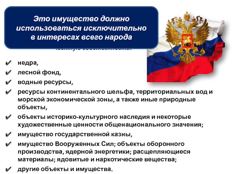 Предположите, какие объекты могут находится только в государственной собственности.