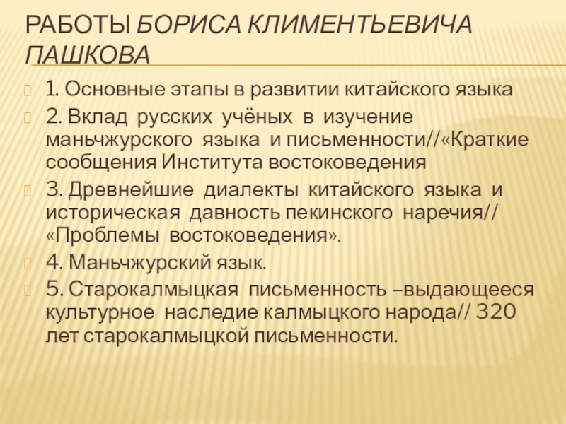 Слайд 17РАБОТЫ БОРИСа КЛИМЕНТЬЕВИЧа ПАШКОВА
