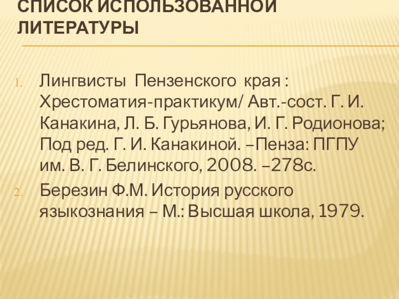 Березин Ф.М. История русского языкознания – М.: Высшая школа, 1979.