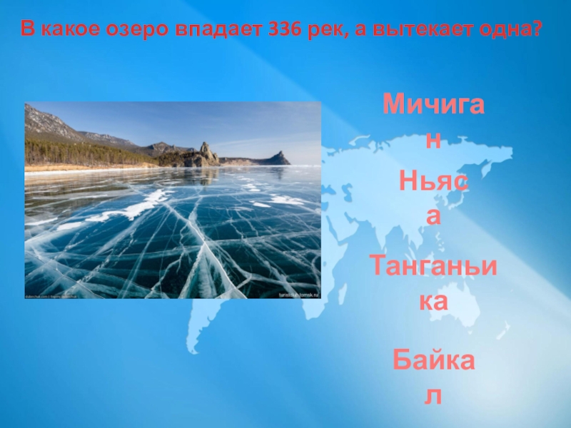 Слайд 23В какое озеро впадает 336 рек, а вытекает одна?
