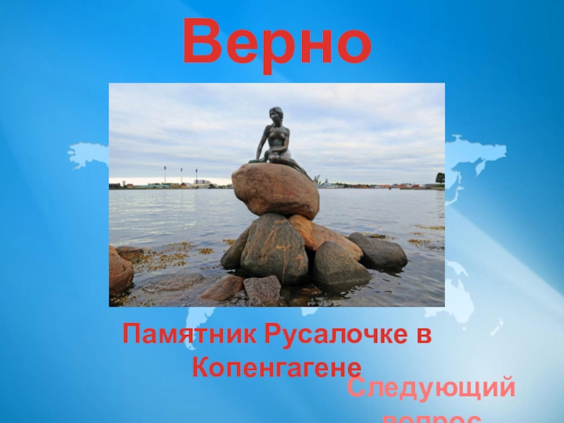 ВерноСледующий вопросПамятник Русалочке в Копенгагене