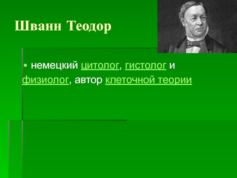 Шванн Теодорнемецкий цитолог, гистолог и физиолог, автор клеточной теории