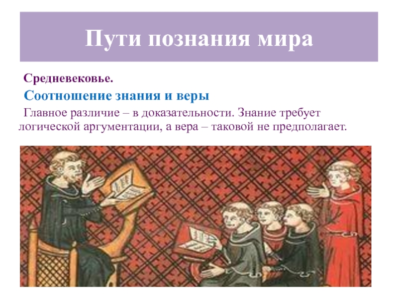 Знание требует логической аргументации, а вера – таковой не предполагает.
