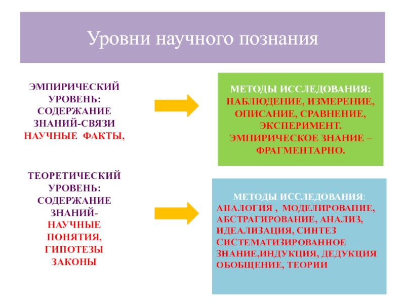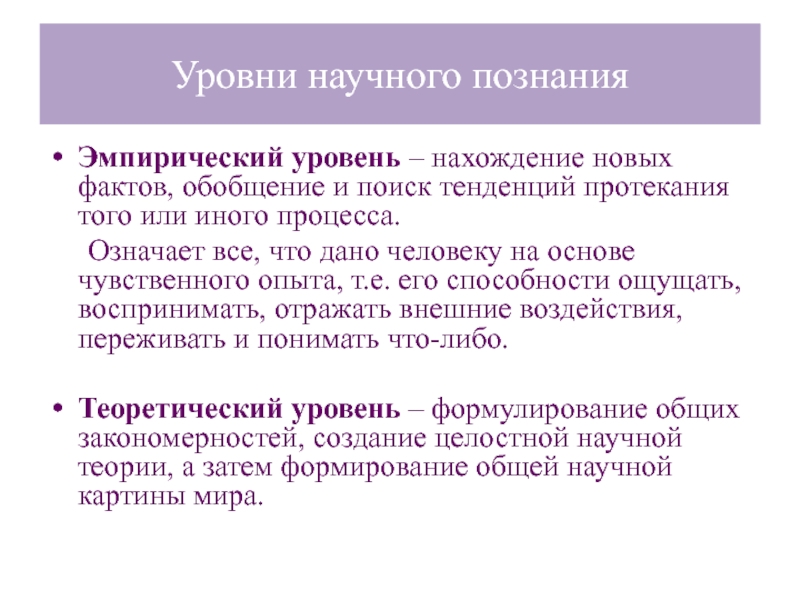 Эмпирический уровень – нахождение новых фактов, обобщение