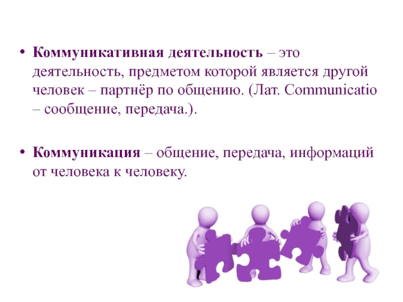 – партнёр по общению. (Лат. Communicatio – сообщение, передача.).
