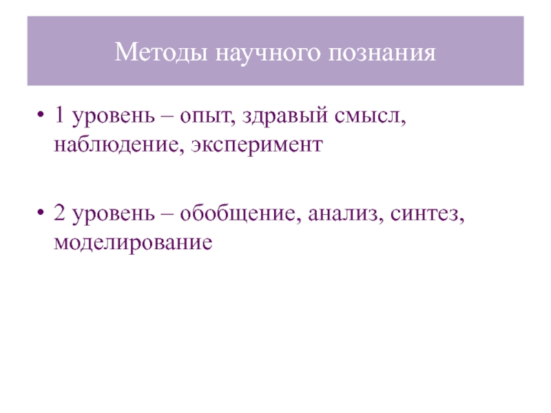 Теоретический уровень – формулирование общих закономерностей, создание целостной научной теории, а затем формирование общей научной картины мира.