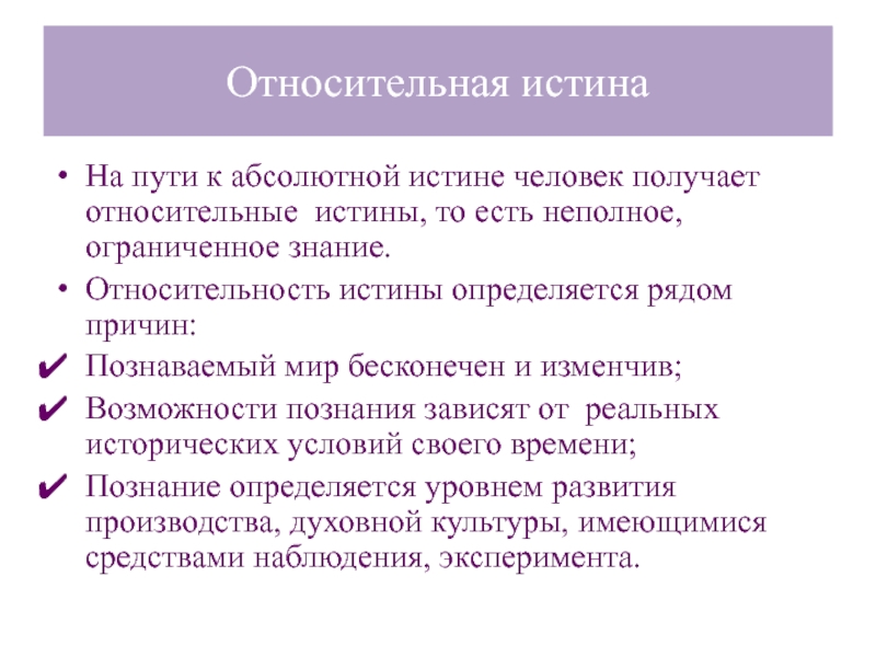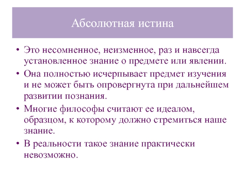 Истина - соответствие полученных знаний содержанию объекта познания.